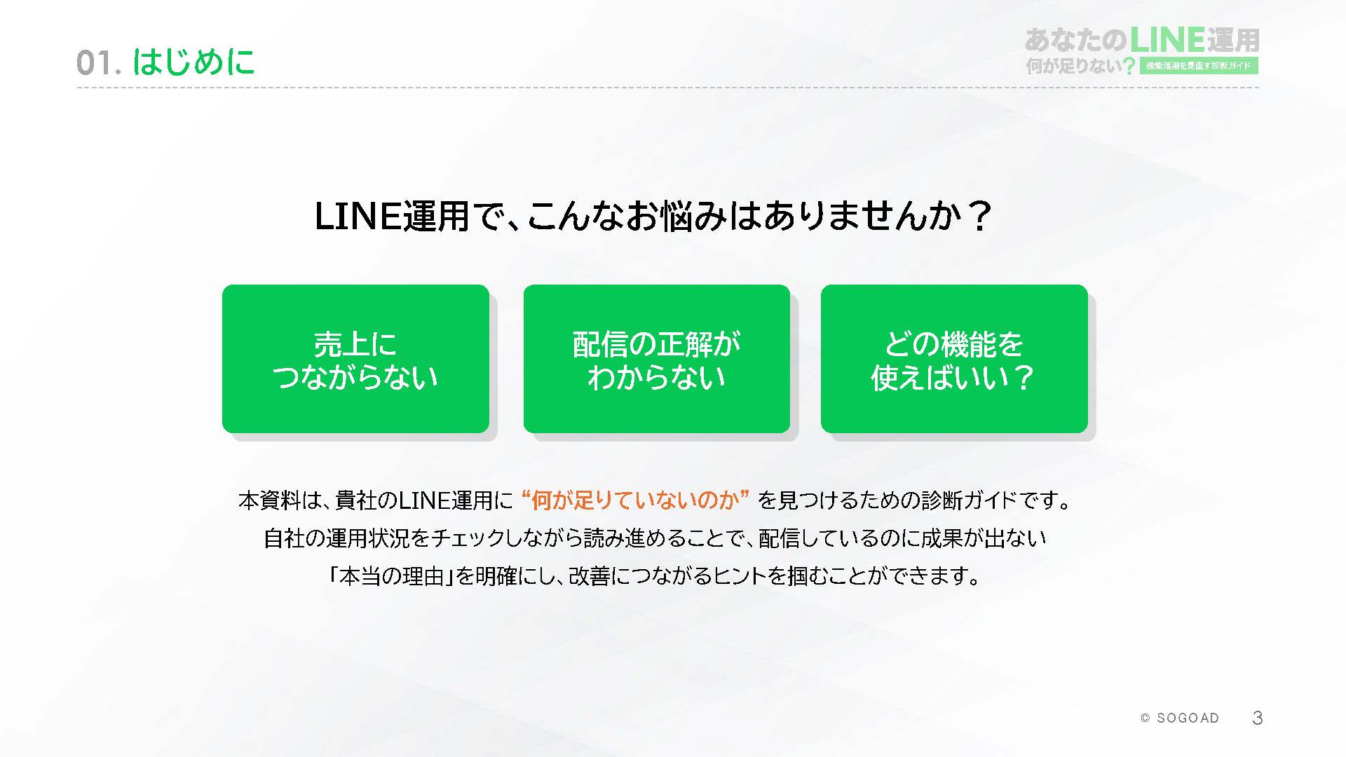 **効果測定に悩んでいる方** 配信後の数値は見ているが、それが良いか悪いかの判断基準がわからない。 **機能を使いこなせていないと感じている方** 様々な機能があることは知っているが、どれを優先すべきか分からず、基本的な配信のみで運用している。 **改善方法でお困りの方** 配信内容やタイミング、訴求方法など、何を改善すれば成果につながるのか具体的な施策が見つからず困っている。