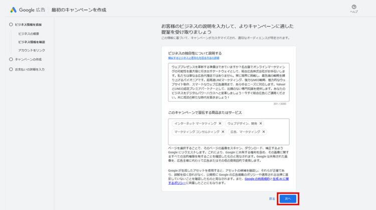 リスティング広告を始めるには、まず Google広告アカウントの初期設定 を完了する必要があります。