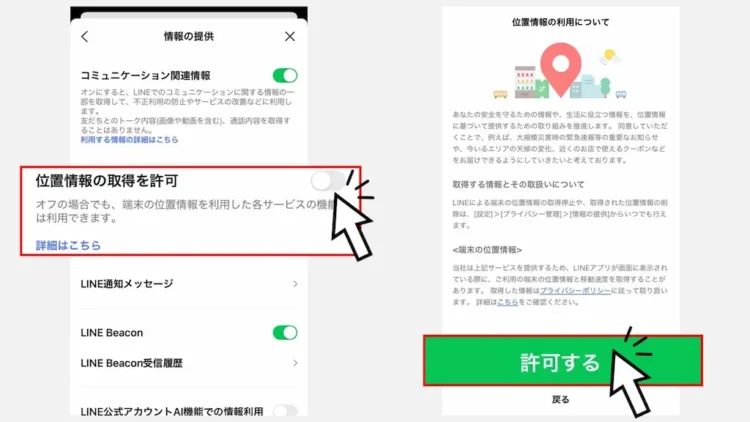 ⑤位置情報の利用についての同意画面が表示されますので「許可する」をタップ