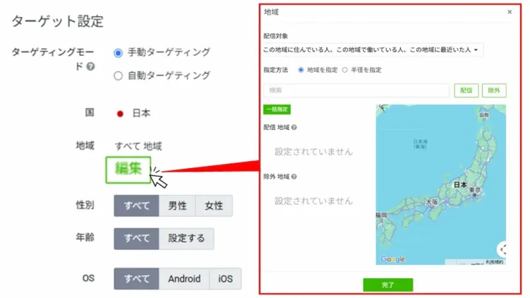 (引用:LINEヤフー for business_「地域セグメント」の設定方法)